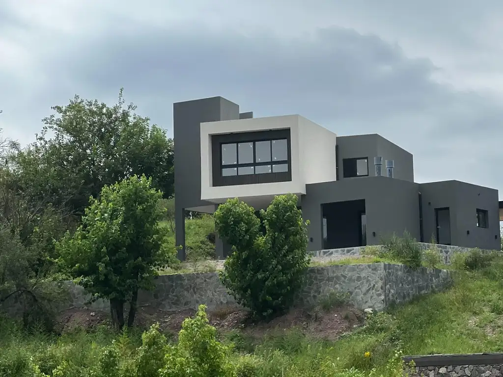 Entorno y Ubicación: Emplazada sobre un amplio terreno de 1.000 m², la propiedad destaca por su diseño de vanguardia que juega con volúmenes en tonos grises y blancos, integrándose armoniosamente al paisaje serrano mediante muros de contención de piedra natural.
