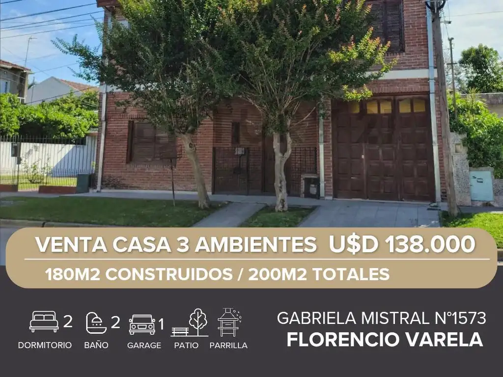 VENTA CASA 3 AMBIENTES FLORENCIO VARELA