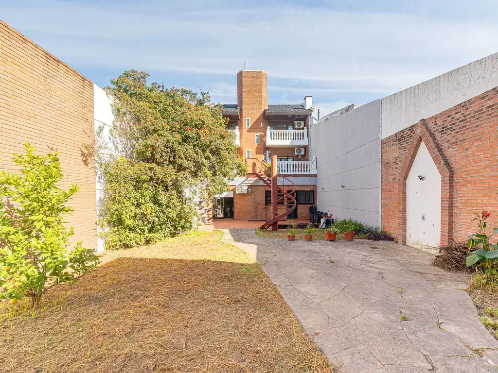 Amplio balcón terraza al contrafrente con escalera directa al jardín