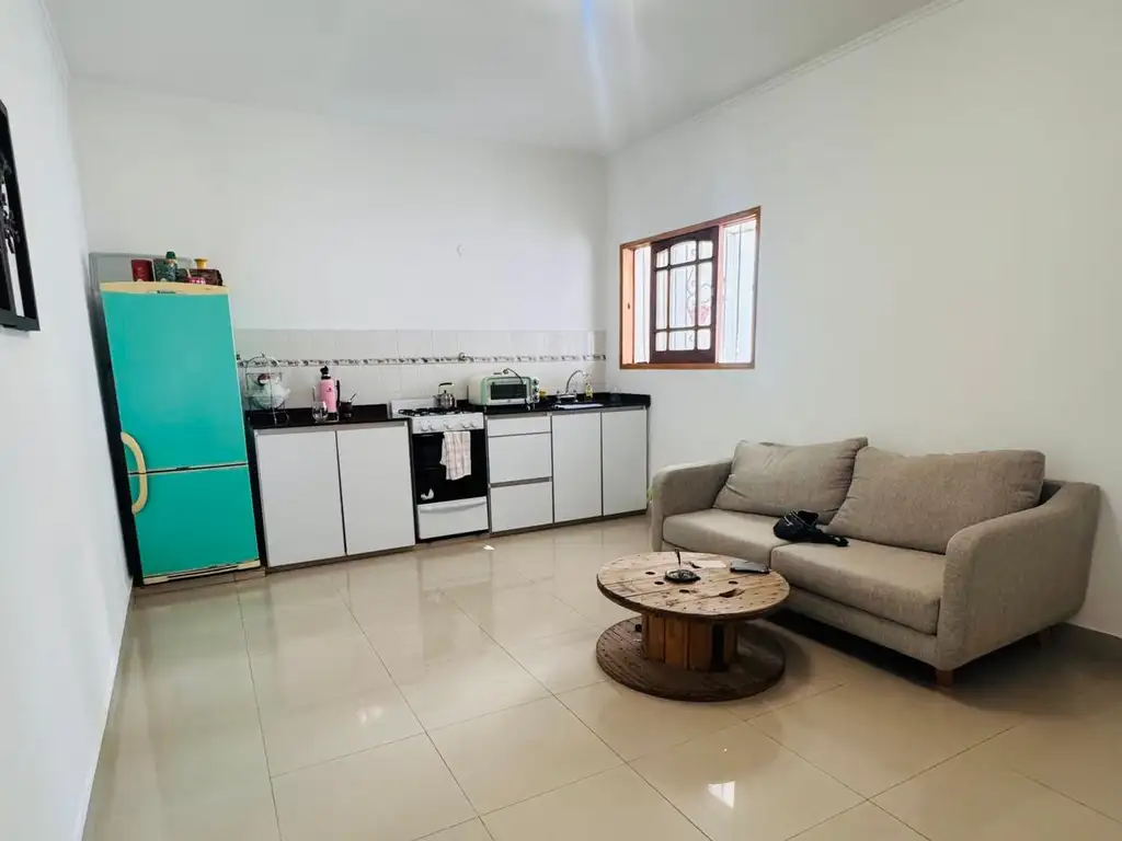 LIVING COMEDOR CON COCINA INTEGRADA , PISO DE PORCELANATO.