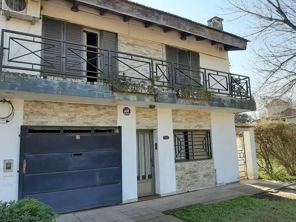 Planta baja: living-comedor con hogar a leña, escritorio, cocina independiente y baño completo. Galería cerrada con ventanales al jardín. Piscina de material con laja atérmica, depósito, parrillero y garage cerrado para un auto (actualmente adaptado como local comercial con frente vidriado).