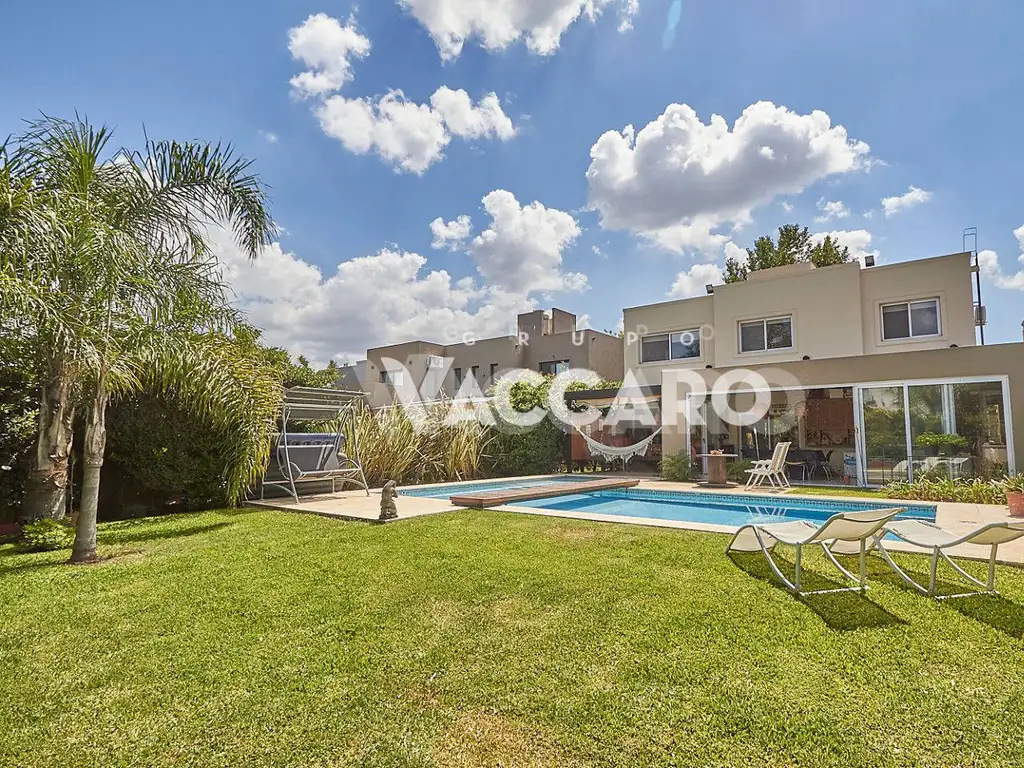 Amplia casa de 230m2 sobre Lote central de 550m2, con 3 dormitorios, siendo el principal en suite, galería equipada con parrilla, jardín con piscina y cochera cubierta para varios vehículos.
