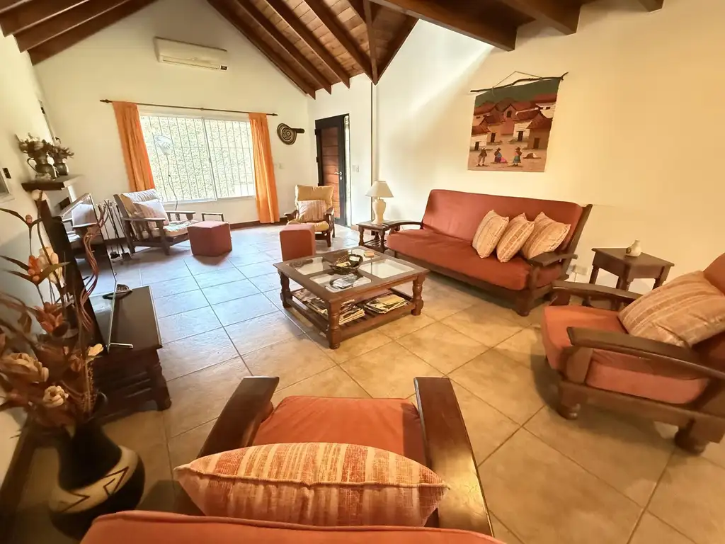 - Living comedor muy amplio con hogar a leña y salida a la galería.