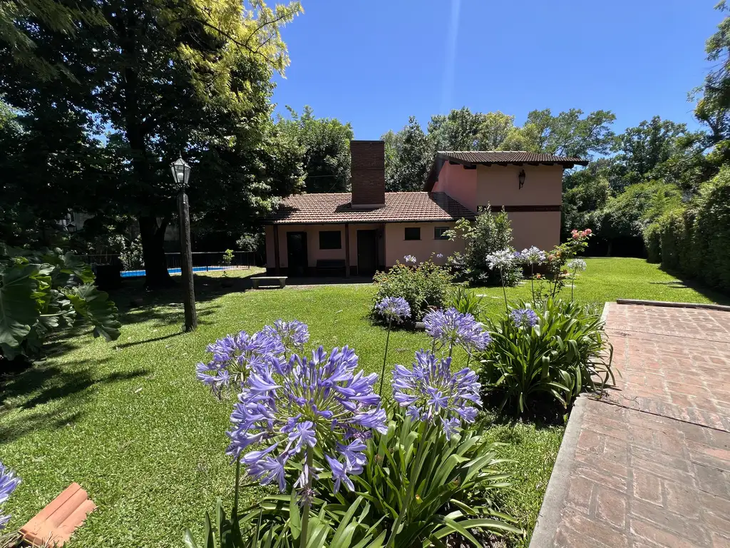 Lindísimo casa 6 amb todo exterior con un excelente jardín perimetral. Lote de 30 m de frente x 50 m fondo, excelente arboleda. La casa cuenta en P.B. con living comedor, cocina, 3 dormitorios con placard, 2 baños uno completo y el otro con ducha, galería al frente, en P.A. se sube por una escalera de madera muy comoda y se accede a 2 dormitorios mas estos con pisos de madera. Todos los ambientes al exterior. En su exterior nos encontramos con un excelente jardín perimetral a la casa con una piscina de material, quincho y un cuarto de herramientas. Está en una excelente ubicación, cerca de acceso a Panamericana.