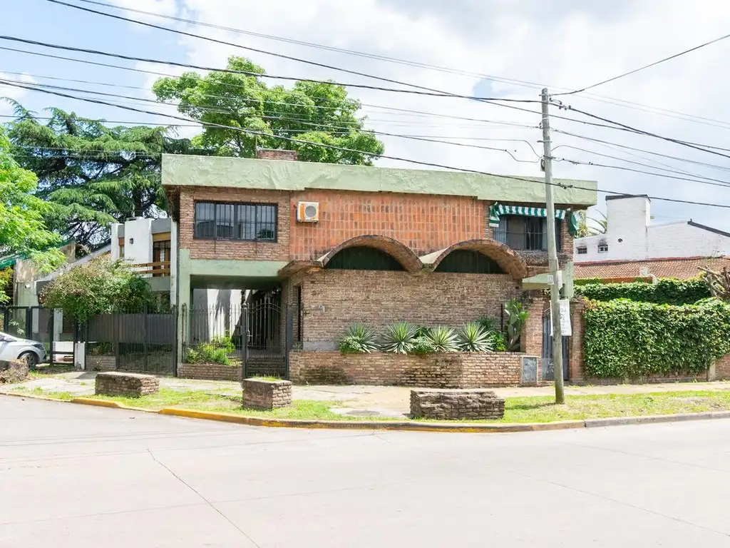 Construida en 1974 con una sólida estructura de ladrillos, la propiedad ofrece un diseño inteligente distribuido en dos plantas que maximizan cada metro cuadrado. La planta baja invita a la vida familiar con un amplio living comedor que incluye un acogedor hogar, ideal para reuniones íntimas y momentos de conexión.