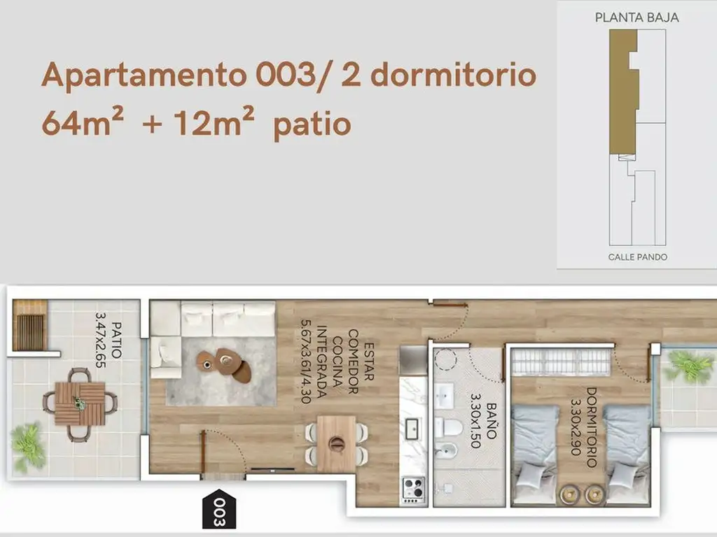 Unidad 03 en planta baja, en un condominio de 8 unidades independientes, sin gastos comunes.
