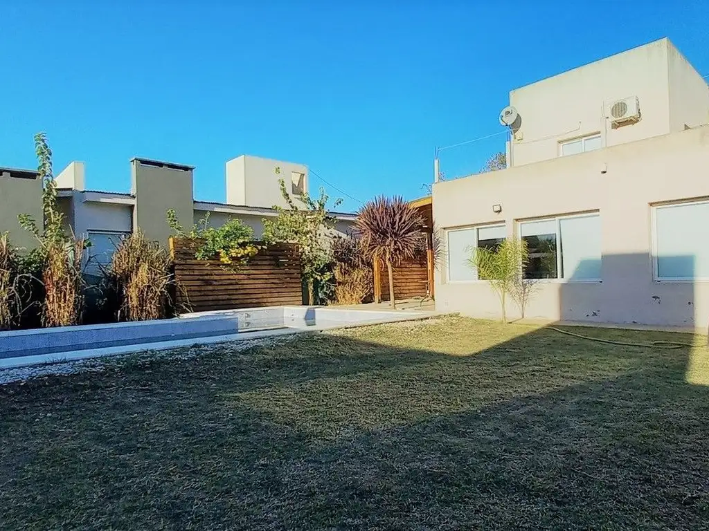 Casa ubicada en el Barrio Don Carlos, la misma cuenta en Planta Baja: en su parte exterior con Jardín al frente, garaje cubierto para dos vehículos con acceso por portón automático, al fondo cuenta con jardín con verde, piscina de 8 x 4 mts. totalmente esquipada, solárium, patio semi cubierto con parrilla. En el interior posee un amplio ambiente con comedor y sala de estar ambos con hermosa vista al jardín, cocina completa con mueble bajo mesada y alacena, instalación para lavarropas y barra desayunadora; un dormitorio con placard empotrado y baño completo, un toilette social. En Planta Alta: Dispone de dos amplios y luminosos dormitorios, uno de ellos con placard empotrado, el segundo con vestidor y baño compartimentado en suite, éste último tiene acceso a la terraza.