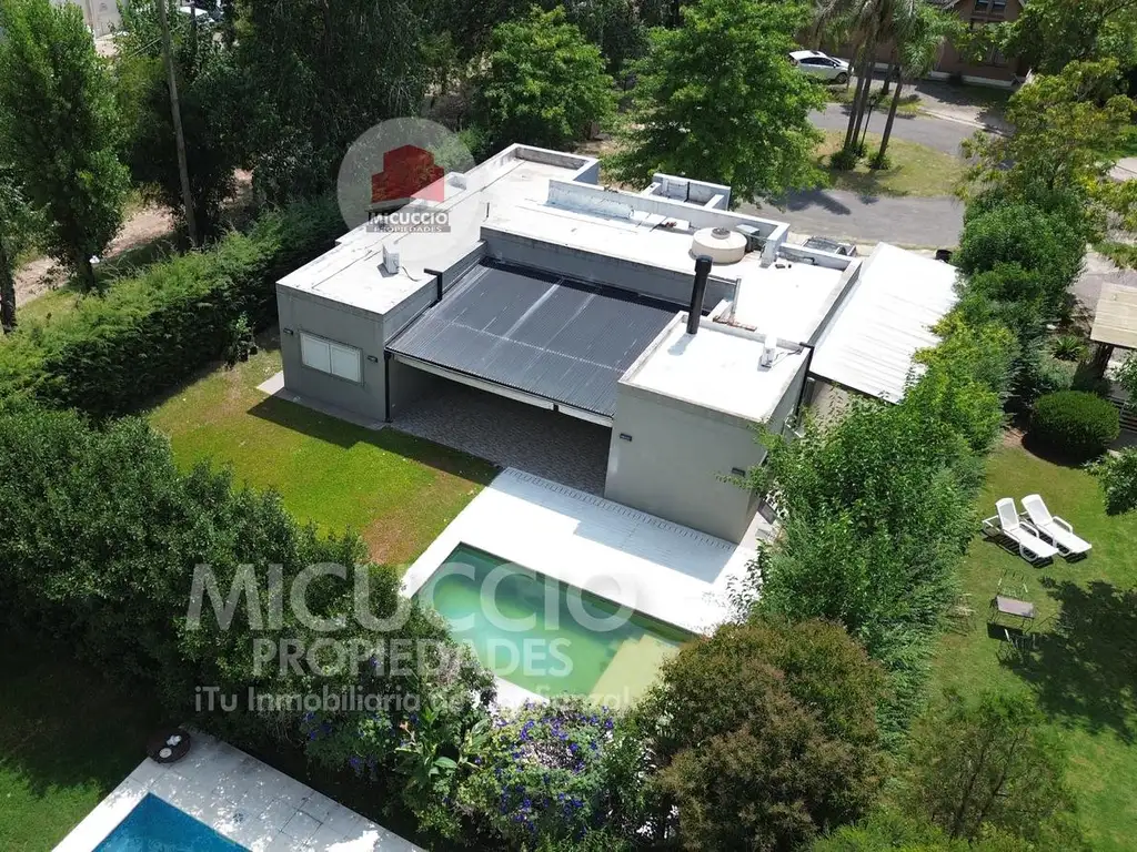 La propiedad cuenta con servicios esenciales como agua corriente, gas natural, electricidad e internet, y está ubicada en un barrio privado con seguridad las 24 horas. Además, ofrece seis espacios de estacionamiento, dos de ellos cubiertos.