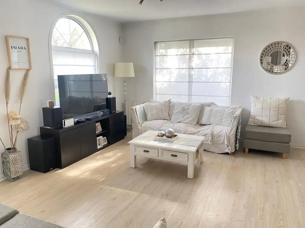 • Living comedor con ventanales y salida al jardín.