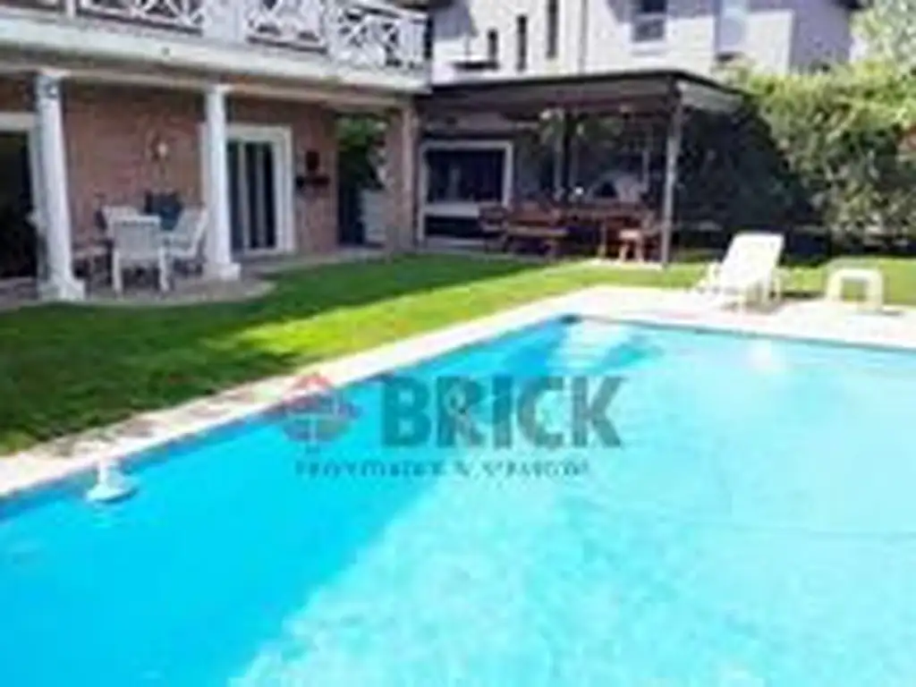 Impecable jardin parquizado con piscina, quincho, parrilla con bacha y horno de barro. Riego por aspersion automatico y Grupo electrógeno. Aire Acondicionado central Frio/Calor.