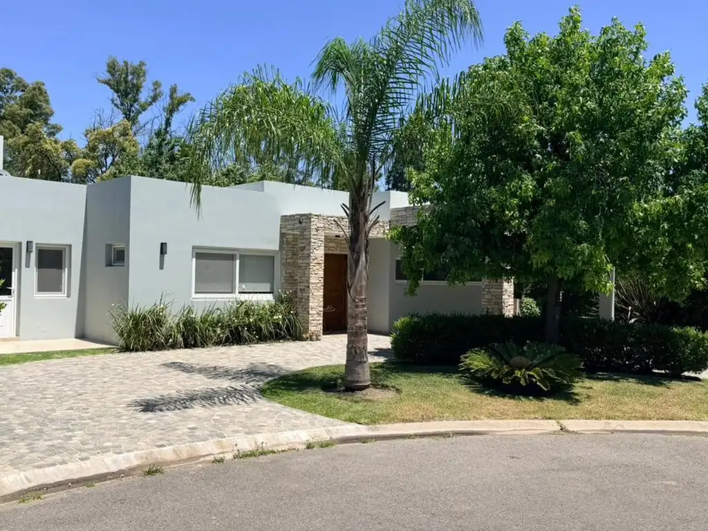Se caracteriza por una distribución cómoda, luminosa y muy bien pensada. Al ingresar, un recibidor ordena la circulación y da paso a los distintos ambientes, con un toilette de recepción y pasillos que conducen tanto al área social como al sector privado. La cocina, amplia y protagonista, se abre a través de grandes ventanales, cuenta con isla central con anafe y una generosa mesada en L, integrándose de manera natural al comedor y al living, todos conectados al exterior mediante puertas balcón que aportan luz y continuidad visual. En el área íntima se desarrollan tres dormitorios: el principal en suite, con baño de grandes dimensiones y vestidor, y dos dormitorios secundarios con placares empotrados que comparten un baño completo con bañera. Hacia el fondo, la casa se expande a una galería con parrilla, pensada para encuentros y momentos de descanso, rodeada por un gran jardín y una piscina revestida íntegramente en venecitas, que completa un espacio exterior cuidado y disfrutable durante todo el año.