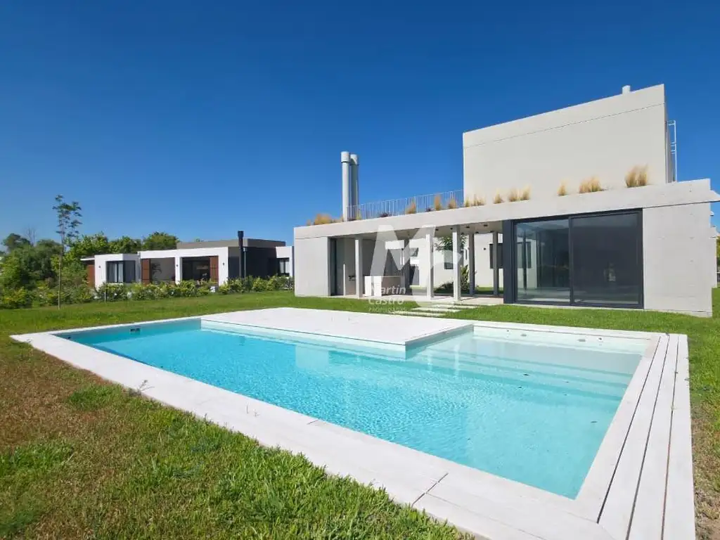 Equipada con aire acondicionado en todos los ambientes, calefacción por losa radiante con termostatos WiFi, piscina revestida y climatizada, riego y parquización completos.
