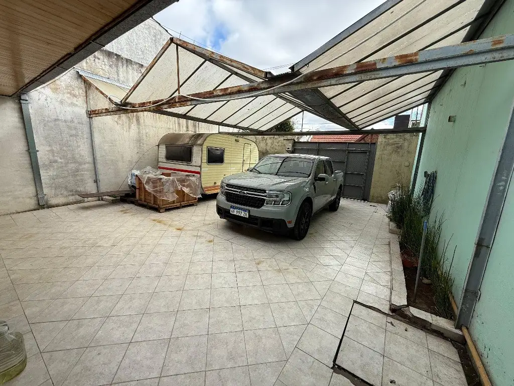 La vivienda principal de 3 ambientes cuenta con un amplio patio al frente, 2 dormitorios, un baño completo con bañera, estar-comedor con cocina completa, muebles sobre y bajo mesada y muy buena iluminacion.