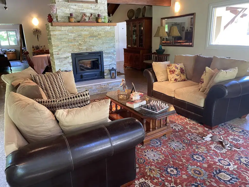 - Living - Comedor con fantástico Hogar a leña central con apertura tanto al Living como al Comedor y amplios ventanales con vistas al Parque
