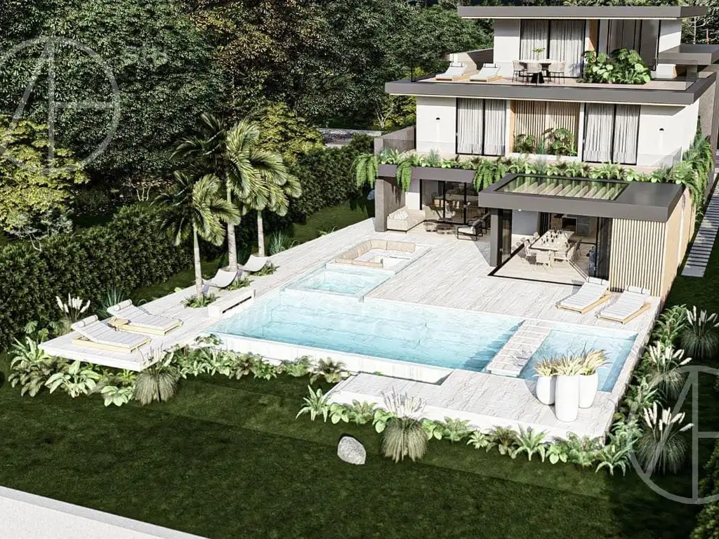 Planta Baja: Recepción de gran impacto que fluye hacia un living-comedor con vistas panorámicas al agua. Escritorio privado, toilette y área social diseñada para la integración. Cocina de última generación con isla.
