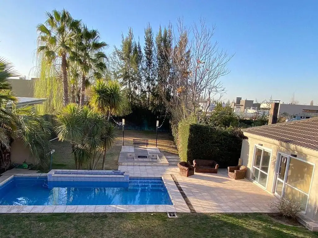 Quincho cerrado con churrasquera y ventanales con vista a la piscina de generosas dimensiones y equipo completo. Baño, depósito y lavandería independiente con acceso a patio tender. Cochera doble pasante cerrada con portón automatizado.