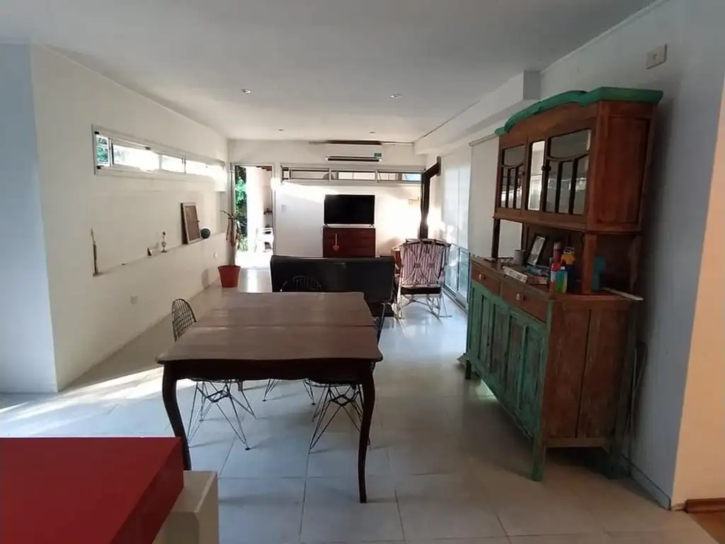 Gran salón comedor integrado a la cocina, ideal para reuniones familiares.