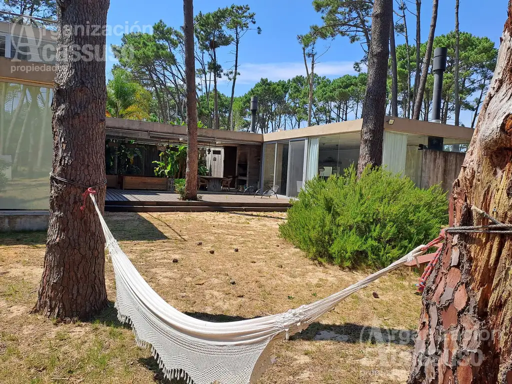 Se accede a través de un patio central que enfatiza la sensación de apertura directa hacia el bosque de pinos, generando un juego entre luces y sombras, de espacios cubiertos y descubiertos, arbolados y despejados, que le dan su carácter propio a la casa.