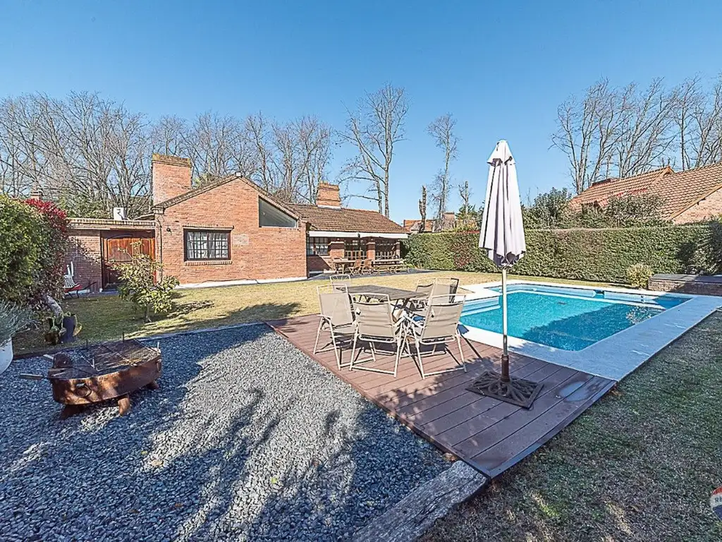 Propiedad de estilo clásico ubicada en Mapuche Country Club, desarrollada en una planta sobre lote central con óptima orientación. Construida en 1989, combina el encanto tradicional con el confort moderno en 138 m² totales, distribuidos en 103 m² cubiertos y 34 m² semicubiertos, emplazada en un terreno de 650 m².