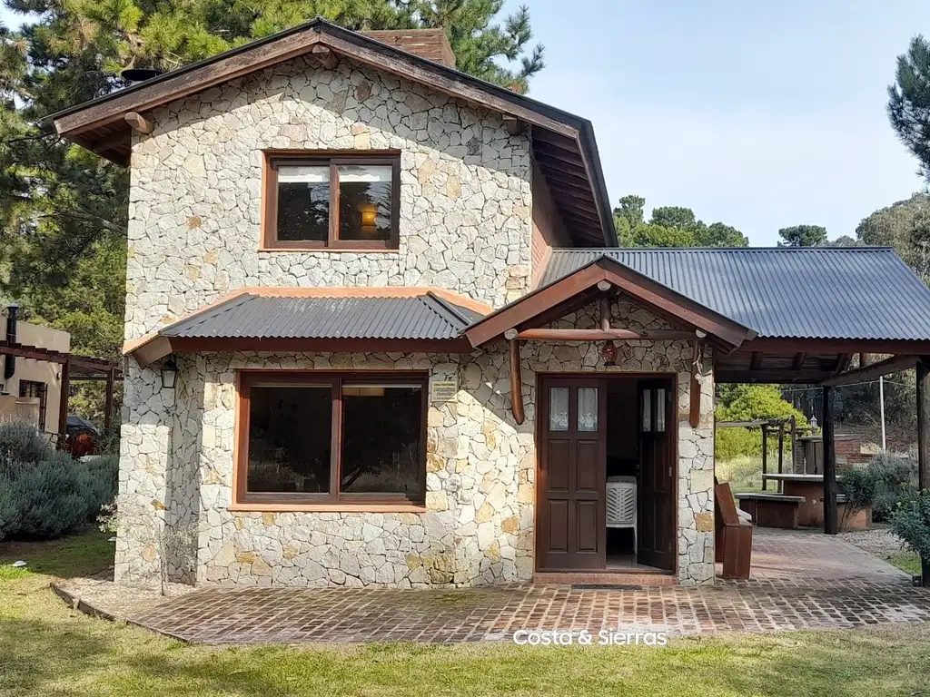 Hermosa casa con piedras y madera en dos plantas