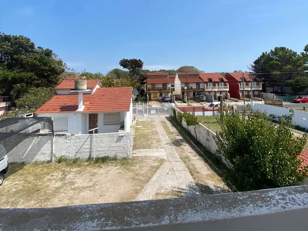 para ir a la planta alta cuenta con una escalera de madera con baranda nos encontramos con un dormitorio matrimonial en suite y balcón con vista al frente, y un segundo dormitorio con vista al patio trasero. La propiedad cuenta con pisos cerámicos, paredes pintadas en blanco en interiores y exterior