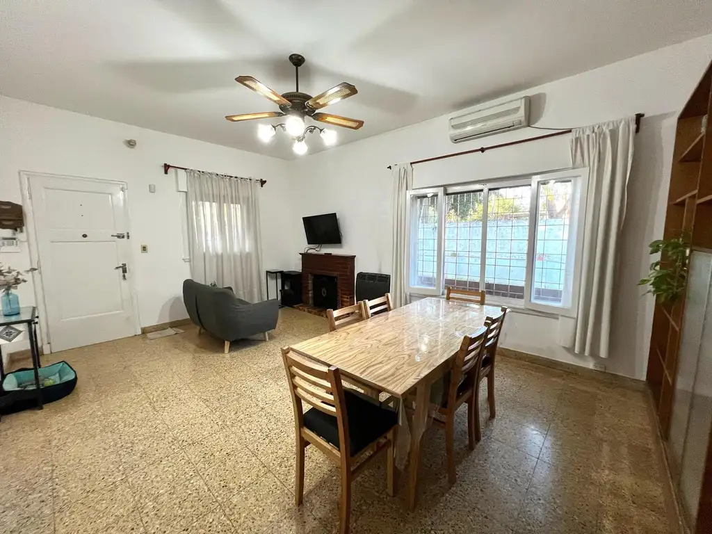 Al ingresar, nos recibe un luminoso living-comedor con gran ventanal que ofrece vistas al jardín, creando un ambiente cálido y natural. Desde allí, un pasillo distribuidor conecta con la cocina independiente, tres amplias habitaciones con placares empotrados y pisos de parquet de excelente calidad, y un baño completo. Los techos altos en toda la casa aportan amplitud y elegancia.