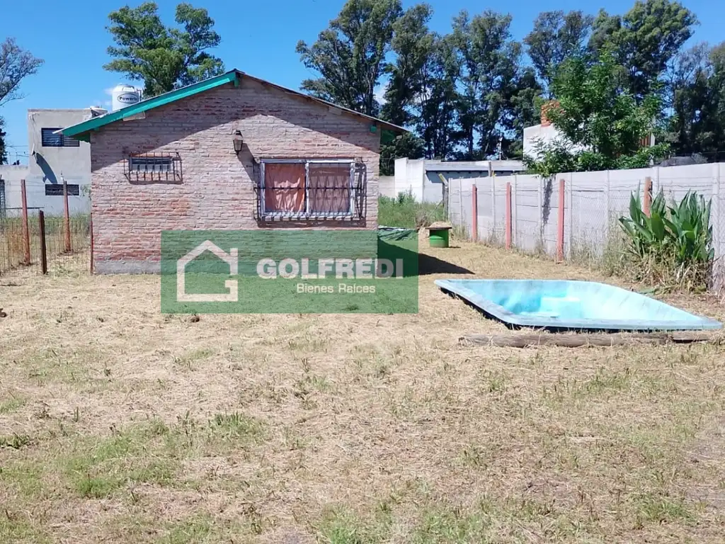 Construcción monoambiente con baño tipo vestuario, quincho con parrilla y bacha, pileta de fibra de vidrio.