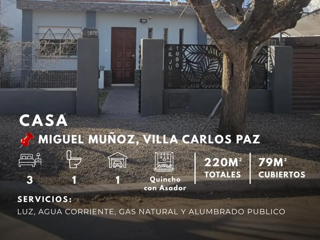 Venta Casa de 3 Dormitorios c/ gas natural en Miguel Muñoz, Villa Carlos Paz