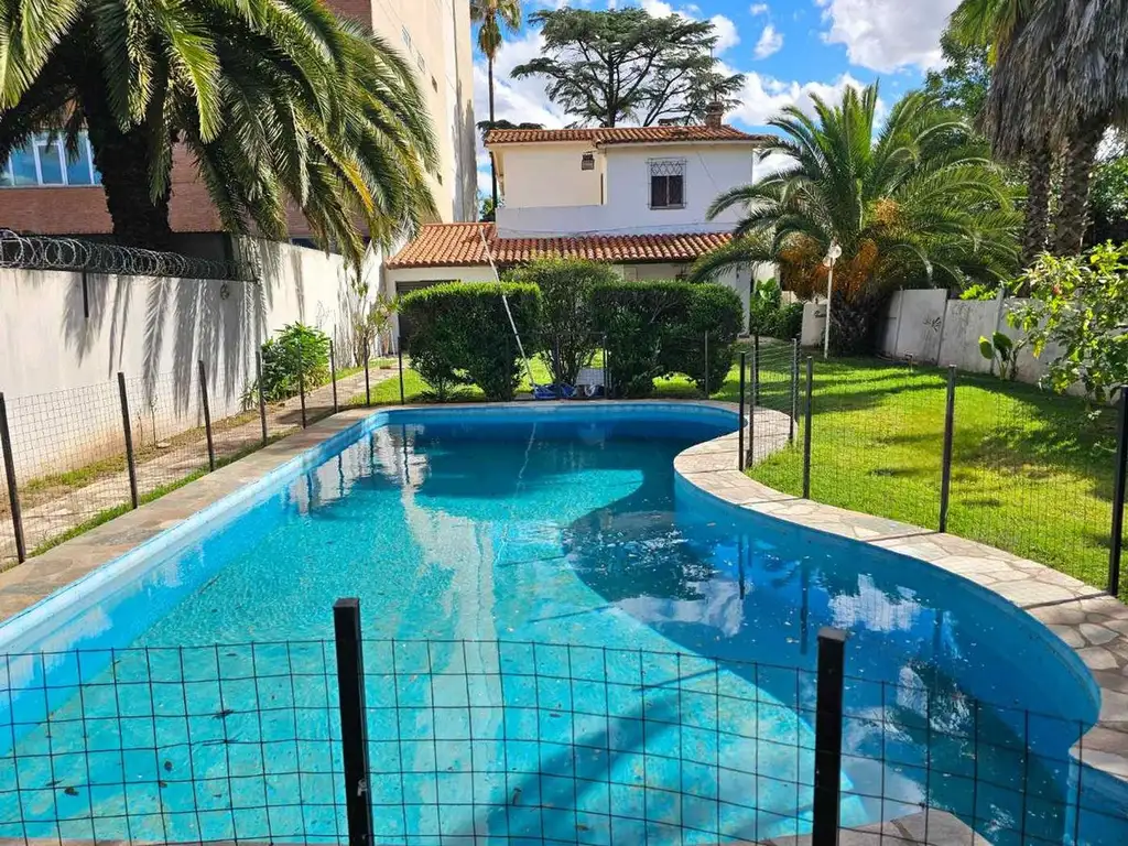 La propiedad se distingue por su impresionante terreno, que incluye un parque al frente y un jardín al fondo. En el corazón del jardín, una pileta de 9 x 4,5 metros promete momentos inolvidables durante el verano, acompañada de un quincho con parrilla que hará de tus reuniones un éxito. Al fondo del lote, un departamento de 2 ambientes con baño y cocina ofrece espacio adicional para visitas, renta o uso multifuncional.