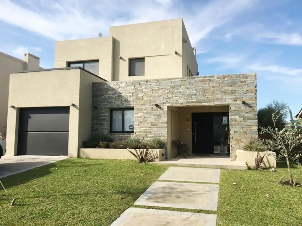 Al ingresar nos encontramos con un cómodo hall de recepción que nos lleva al living con hogar revestido en piedra, comedor principal. Cocina muy completa con isla central, comedor diario y muebles de bajo mesada y alacenas de excelente calidad. Todos los ambientes apaisados con vistas y salida al jardín y a la galería. Amplísima Galería con cerramiento tipo reiki, parrilla y horno de barro.