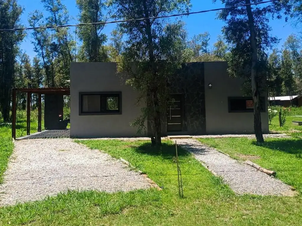 Descripción: Living comedor con chimenea a leña , cocina , baño con ante baño e hidromasaje . Dos habitaciones amplias con vistas al bosque . Parrilla y galería.