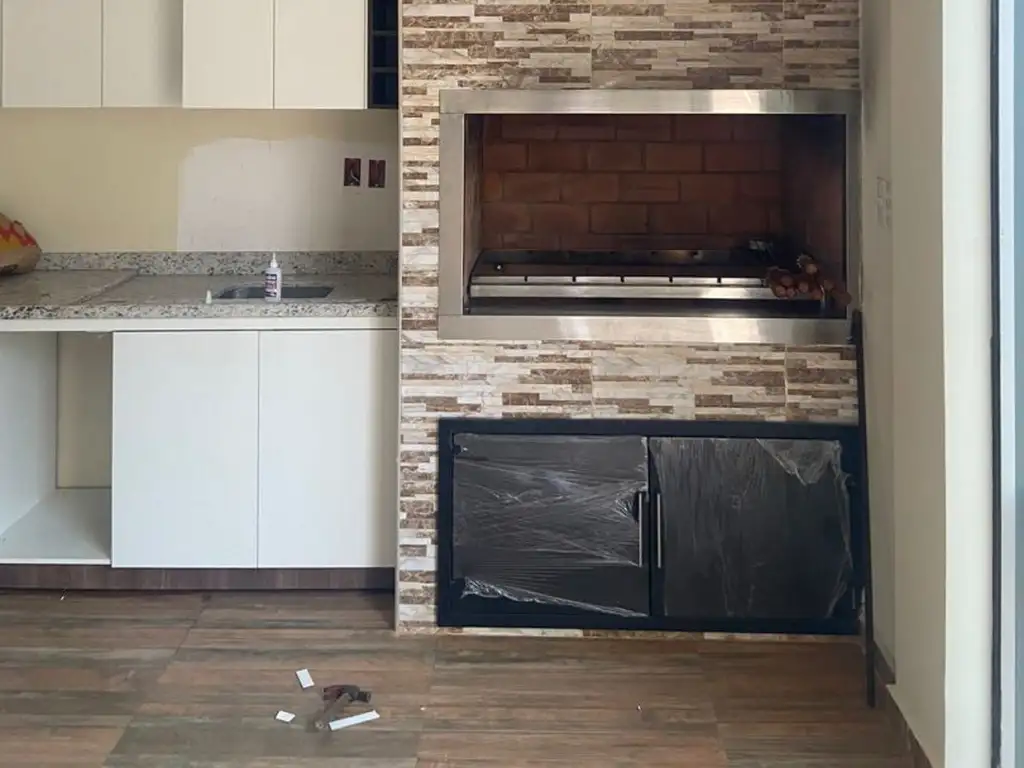 Planta Baja:- Sala- Cocina amoblada- Comedor- Baño social - Quincho con parrilla integrada- Área de servicio con pieza y baño - Patio amplio- Cochera para 2 vehículos