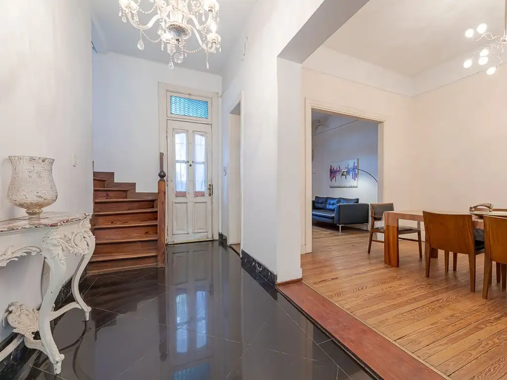 En PB, hall recibidor por el cual se accede al living-comedor con pisos de pinotea, cocina separada y amplio ambiente secundario apto estar/comedor. Escritorio. Lavadero y baño completo . Garage.