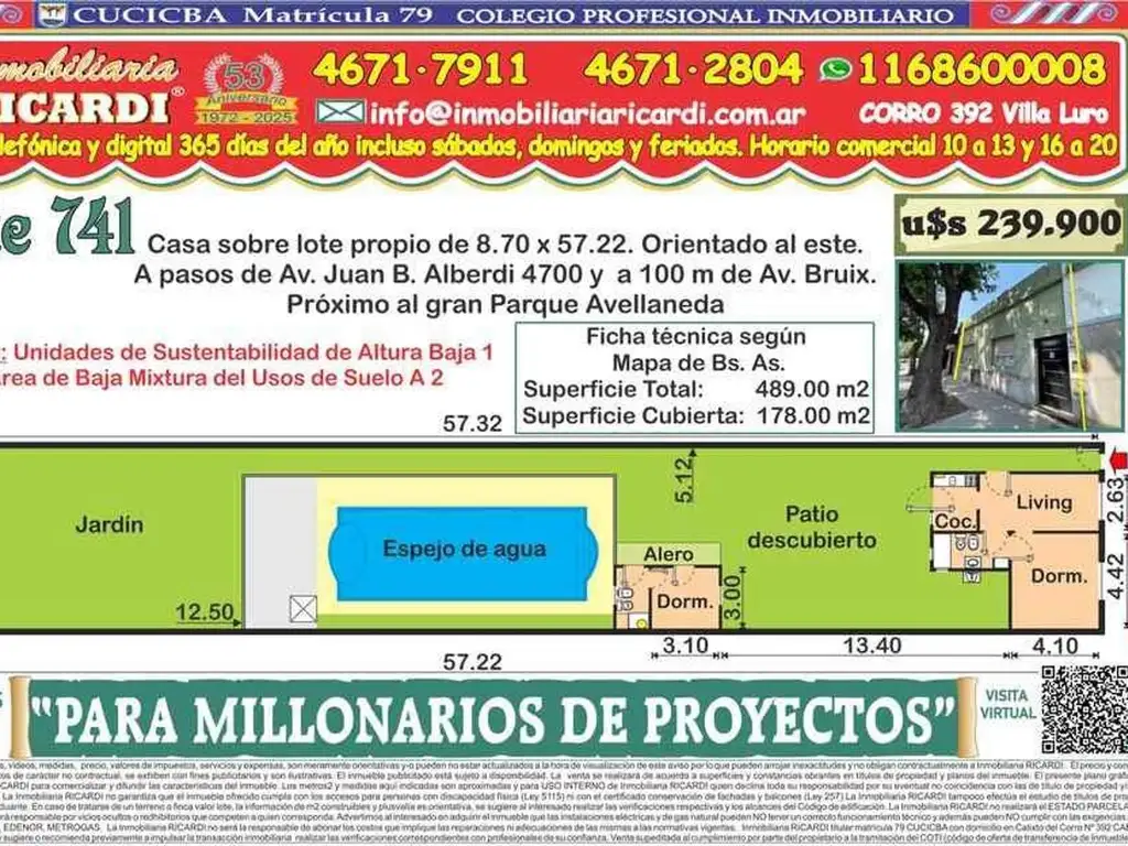 El inmueble publicitado se encuentra está sujeto a disponibilidad y la Inmobiliaria RICARDI actúa como comercializador del inmueble., siendo bajo responsabilidad del propietario la tramitación del COTI.