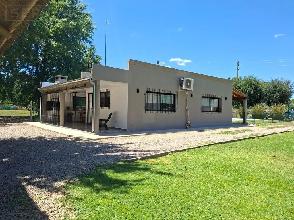 Consta de dos dormitorios con placard, amplio living-comedor, cocina incorporada, baño completo, pisos de cerámicos, muy luminosa, lavadro, parrilla, galería, pileta de fibra con filtro, solarium, quincho, conteiner -depsosito, parque con árboles, plantas, flores, huerta