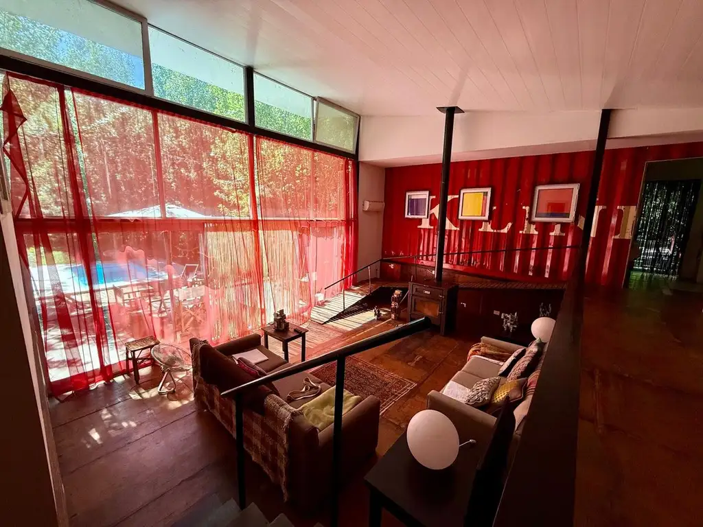 COCINA TOTALMENTE EQUIPADA CON COMEDOR DIARIO, Y EN DESNIVEL (CON DESCENSO Y ASCENSO MEDIANTE ESCALERAS O RAMPA, SE PUEDE OBSERVAR EN LAS FOTOS) UN ENORME LIVING CON SALAMANDRA CON HORNO, Y SUS VENTANAS SON DESDE EL TECHO HASTA EL PISO, IDEAL PARA LA VISTA AL JARDIN CON UNA PILETA DE 6X3 BELLISIMA.