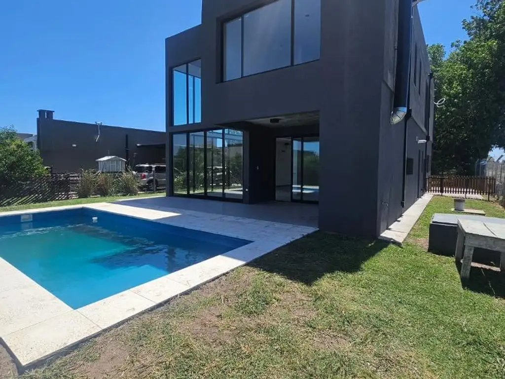 Moderna y luminosa propiedad lista para estrenar, ubicada en el consolidado barrio San Ramón, Pilar del Este. De líneas contemporáneas, se destaca por su diseño con hormigón visto, amplios ventanales de piso a techo y excelentes visuales al jardín, logrando una perfecta integración entre interior y exterior.