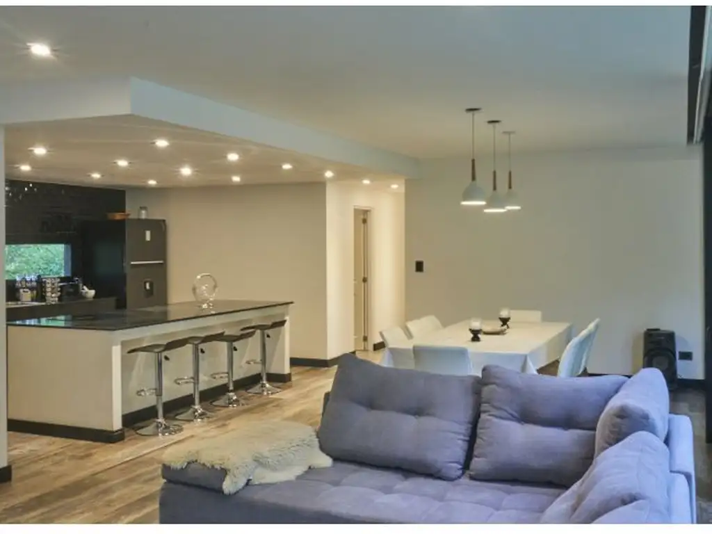 La propiedad se encuentra enclavada en el fondo del terreno dando una amplitud visual muy linda debido a que los 2 dormitorios y el living dan al jardín. Al ingresar nos encontramos con un estar y un comedor de 11 x5 al que se le suma una cocina integrada separada por una barra lo que genera un ambiente más amplio aún. A continuación de la cocina y de manera separada se encuentra un lavadero y un depósito de 6x3. Desde el comedor se ingresa a un íntimo distribuidor desde el que accedemos a 1 dormitorio con su baño completo en frente y luego se ingresa a la suite principal que tiene baño en suite, ante- baño y vestidor.