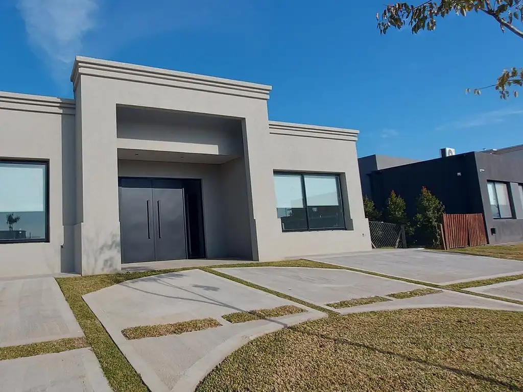 Casa de 1 planta a estrenar, de estilo racionalista, de muy buena calidad de construcción, de 171m cubiertos + 30m semi-cubiertos sobre muy buen Lote Perimetral al Barrio cerrado El Cantón de 600m2.