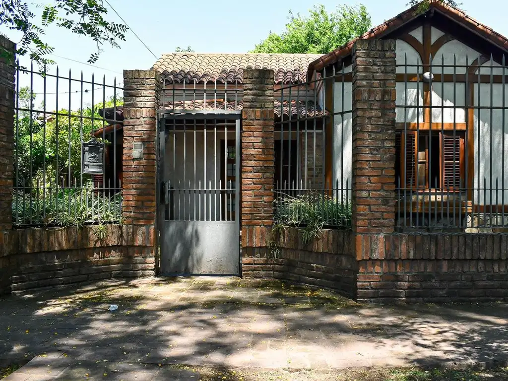 El exterior ofrece un patio de grandes dimensiones con una estética campestre, arboledas añejas, sector de hamacas y una pileta de material en excelente estado, lo que permite disfrutarla tanto como vivienda permanente como también como una casa quinta, con la comodidad de estar ubicada en pleno centro urbano.
