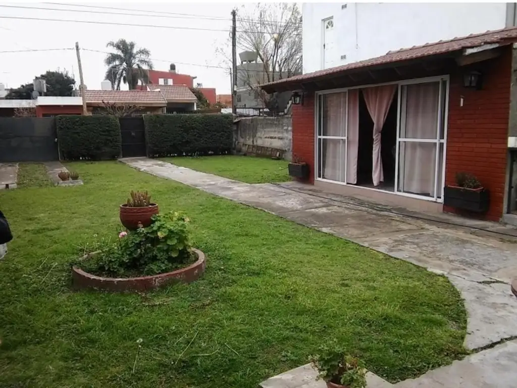 Adelante parque de 10 x 22 mts2 y entrada para dos vehículos, quincho, parrilla, horno de barro.