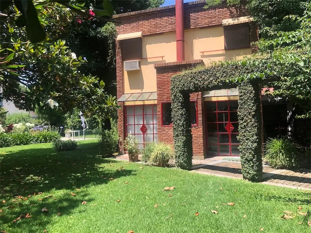 Toda la casa esta desarrollada en un lote y sobre otro lote tiene la piscina climatizada con luces y solárium y el parque con riego automatizado.
