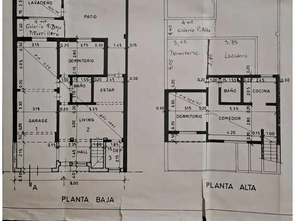 Planta alta: estar comedor, cocina, baño, dos dormitorios, lavadero y galería.