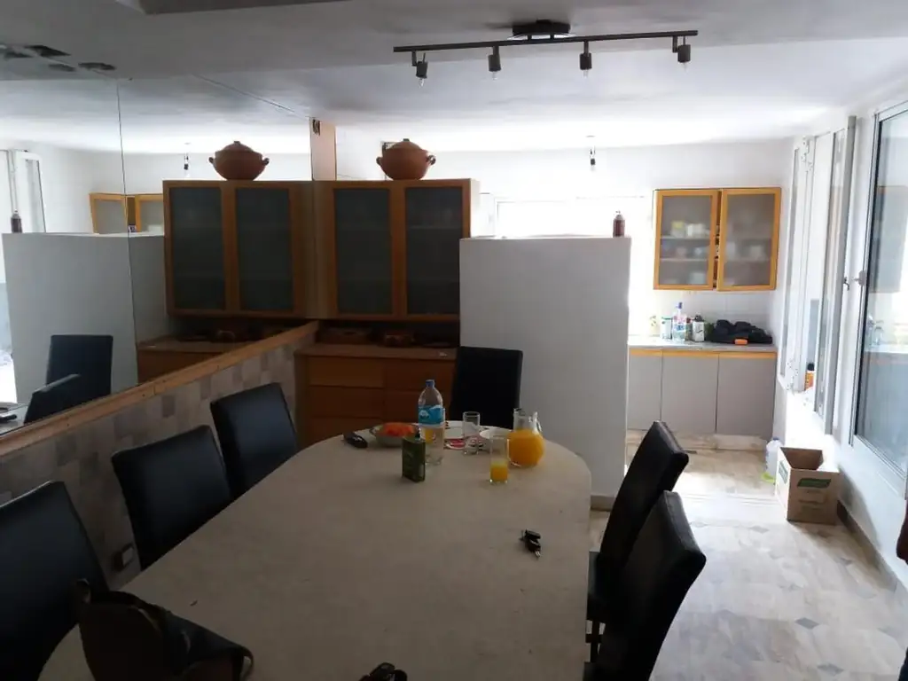 Planta baja: se ingresa por living, desde allí se accede al patio cerrado/cochera, luego al comedor con cocina aparte, y desde alli al baño y dormitorio de planta baja.