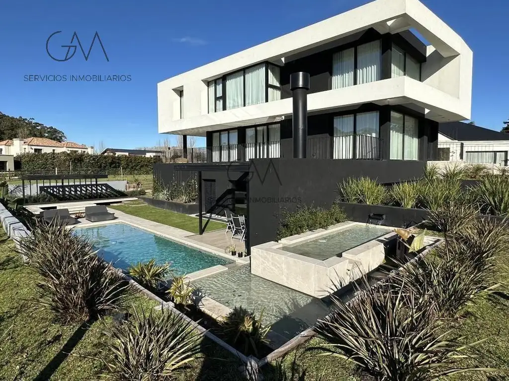 Planta Baja: Elegante living en doble altura, cocina con isla, toilette, terrazas con vistas al jardín y galería con parrilla.