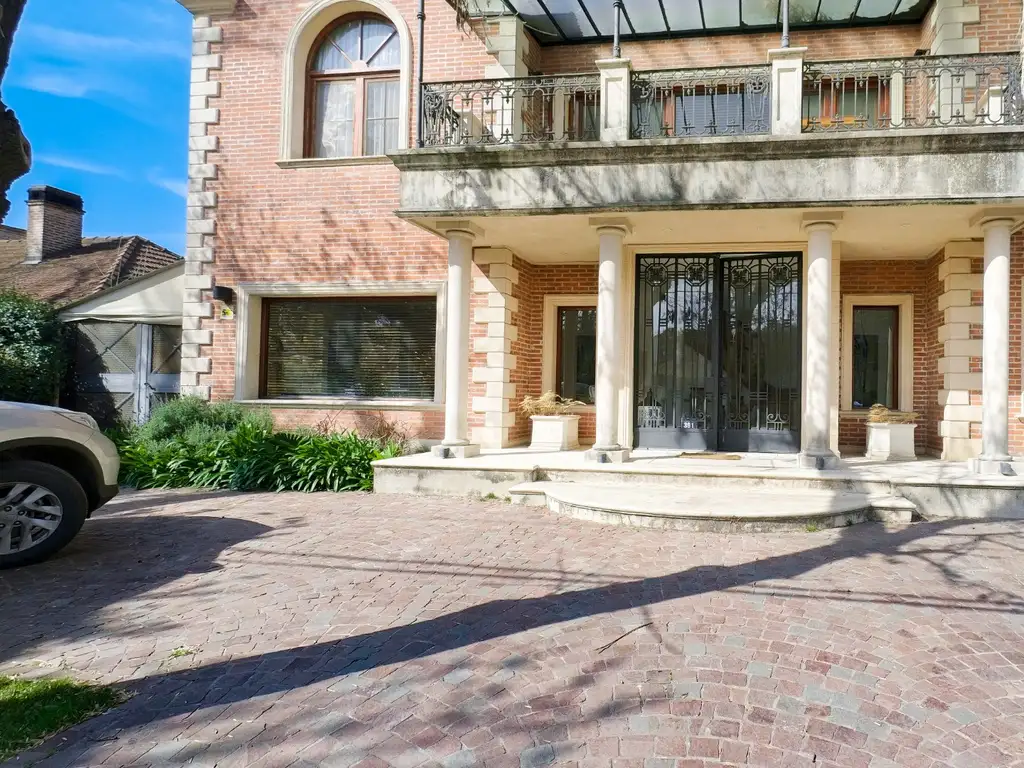 Amplio jardín con añosa vegetación, gran galería con toldos para ser usada en invierno e importante pileta con filtro/motor, riego por aspersión.