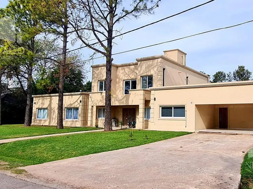 Desarrollada en dos plantas; en Planta baja cuenta con un Hall de entrada, amplio Living Comedor integrado, Toilette de recepción, Dos Dormitorios en Suite, ambos con placard. Otro gran Dormitorio en Suite con Baño Completo y Vestidor, Lavadero, Dependencia de Servio con Baño Completo. Galeria abierta con Parrilla, Toilette. Y Cochera cubierta para dos autos. Psicina con casada de piedras, doble Solarium, duchador y Playa humeda totalmente revestida en venecitas.