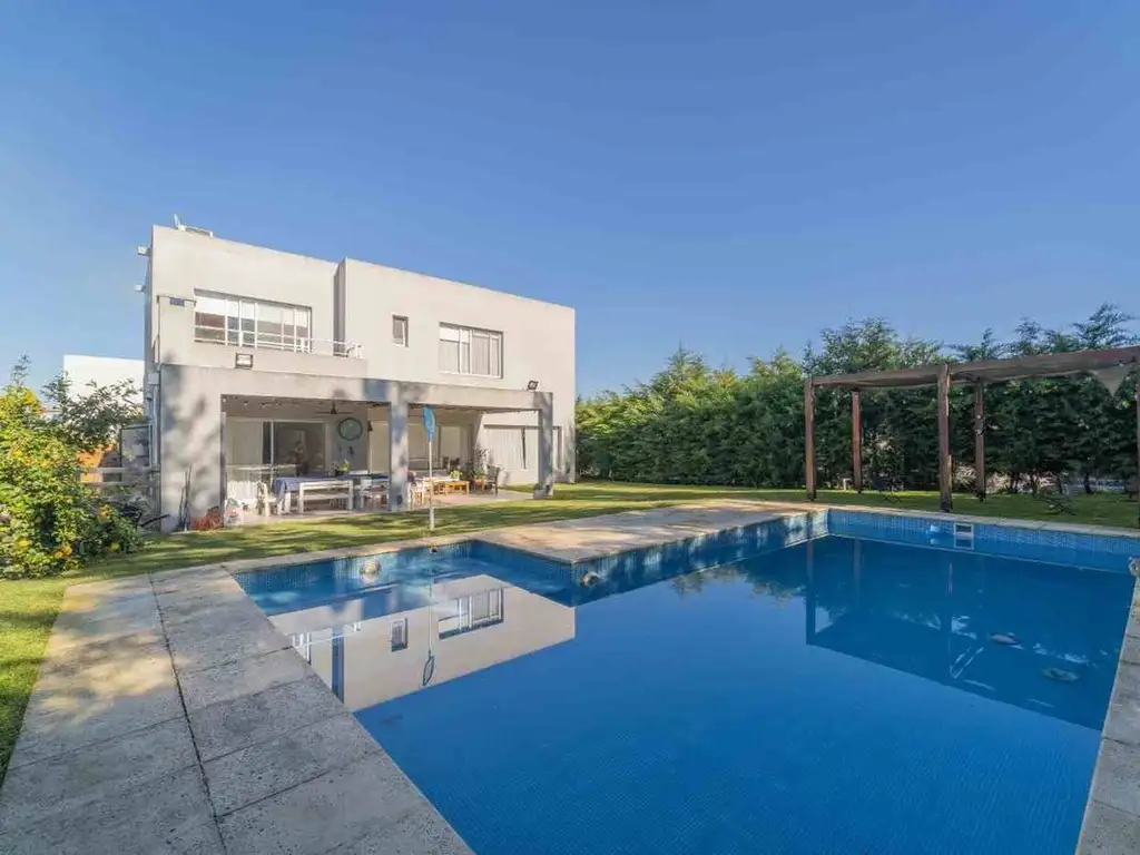 EXTERIOR Y JARDÍN PROFESIONAL: El lote cuenta con un jardín totalmente parquizado, destacando el pasto de Grama Bahiana de alta calidad y un perímetro cercado con frondosos arbustos que aseguran privacidad. El mantenimiento está optimizado gracias al Sistema de Riego automático instalado. Disfrutá de la gran Pileta de 32 m² y Área de Parrilla. 4 Cocheras.