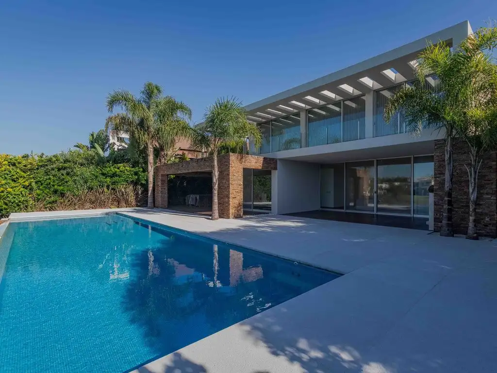 Casa de estilo moderno ubicada en la isal central del exclusivo Barrio Santa Bárbara, en Tigre. Con una superficie total construida de 702 m², distribuidos en 435 m² cubiertos y 267 m² semicubiertos, sobre terreno de 1.092 m², esta propiedad ofrece amplios y confortables espacios.