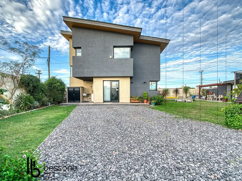 El sector social se proyecta hacia el exterior, donde se destaca un parque totalmente parquizado con piscina y galería con parrilla, generando un espacio perfecto para disfrutar todo el año. Junto al área de parrilla se dispone un toilette de uso exclusivo para el sector de piscina y un amplio espacio de guardado. El lote, de generosas dimensiones, cuenta con cerramiento perimetral y portón, brindando privacidad y seguridad.